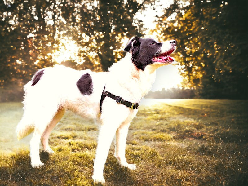 • Bremst den Hund bei Straffung der Leine sanft an der Schulter ab und vermittelt kein Gefühl der starken Bedrohung (Halsband)