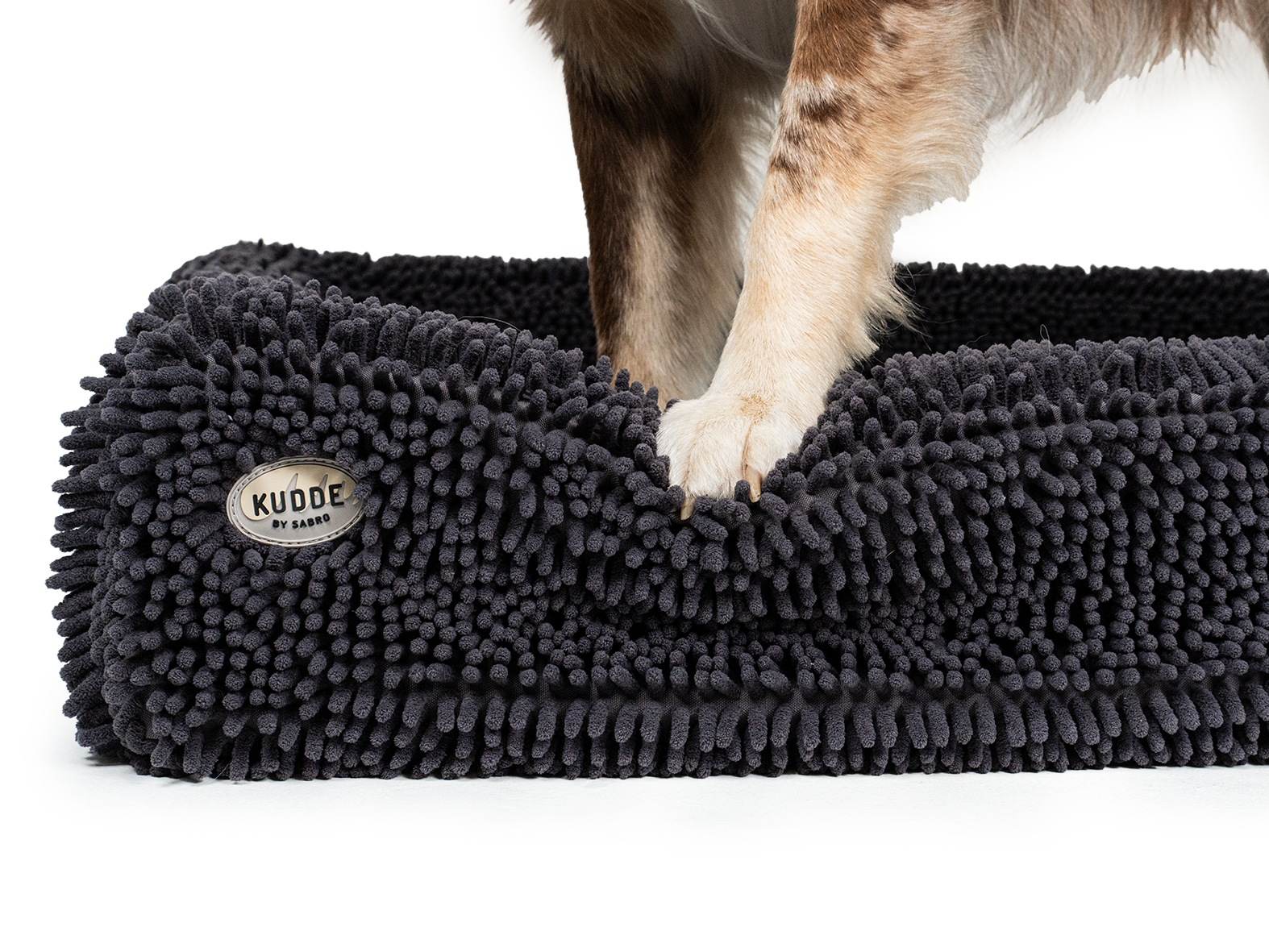 Im Inneren sorgt der bewährte KUDDE-Schaumstoffkern für gesunden, orthopädischen Liegekomfort. Die stabilen Seitenränder stützen Kopf und Nacken perfekt beim Dösen, während die Liegefläche Gelenke und Wirbelsäule entlastet – ein echtes Plus für ältere oder empfindliche Hunde. Der wasserabweisende Schutzbezug unter dem Frottee schützt den hochwertigen Schaumstoffkern vor Feuchtigkeit und Schmutz. Und weil wir wissen, dass Hunde-Alltag manchmal wild wird: Der Bezug ist abnehmbar, waschbar und bei moderater Temperatur für den Trockner geeignet.