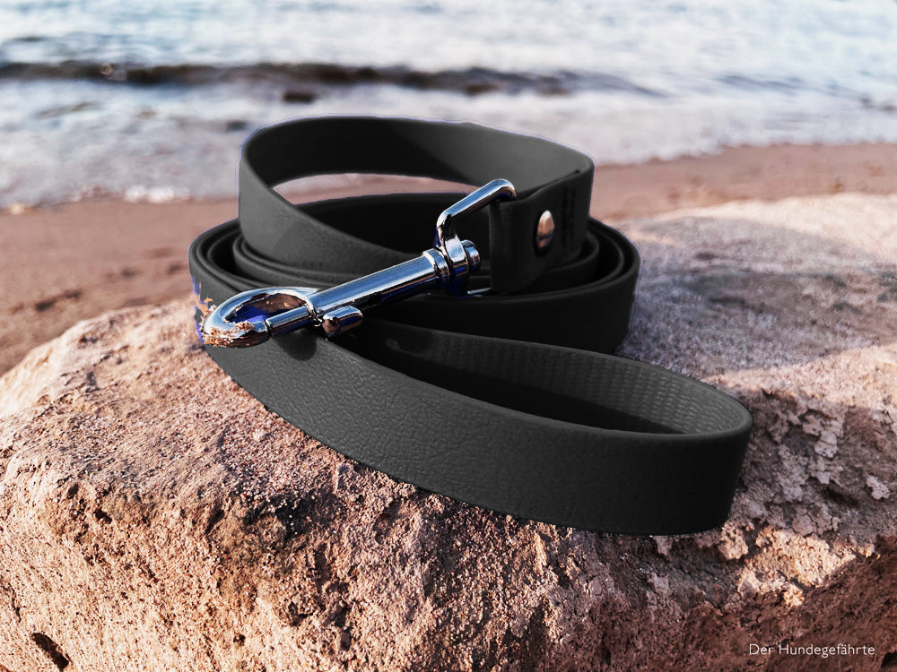 Das Material BioThane® hält bis zu 1000 kg Fliehkraft stand. Besonders starken und großen Hunden wird unsere Variante in 25 mm Breite empfohlen (ab 23 kg). Als Geschenk für Hundehalterinnen und Halter kann man mit der UMS'S ECK nur ins Schwarze treffen.