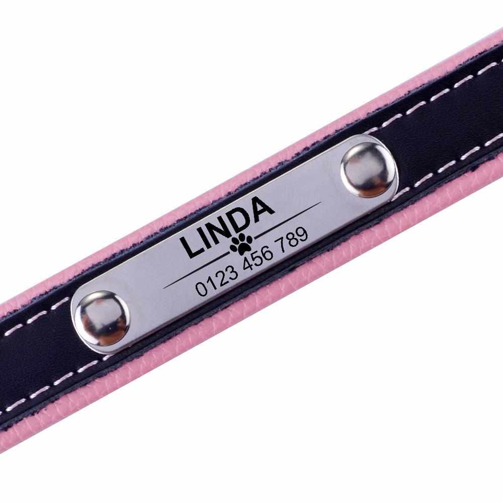 QUALITATIVE HALSBÄNDER: Die rostfreien Metallösen und der Verschluss sind hochwertig verarbeitet. Das Halsband besteht aus weichem Leder, was ein angenehmes Tragegefühl verspricht. Die stabile Metallhundemarke wird mit Ihren Daten graviert. Die Schrift wird gut leserlich auf die Hundemarke gelasert und hält somit für lange Zeit.