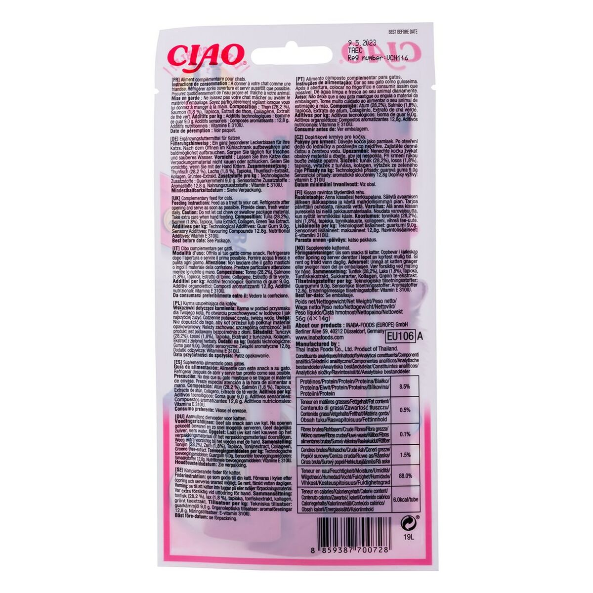Snack für Katze Inaba EU106 Lachsfarben Thunfisch Fisch 4 x 14 g